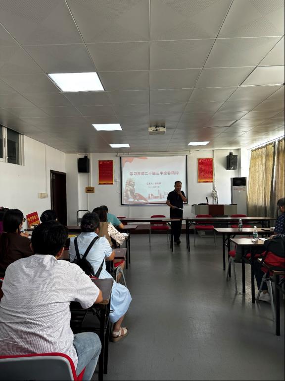 会上,公司党委书记温兆麟从二十届三中全会的重要地位、二十届三中全会的重要内容、以及如何贯彻落实二十届三中全会精神三个方面传达了党的二十届三中全会精神。他指出党的二十届三中全会是在进一步全面深化改革、推进中国式现代化的关键时期召开的一次重要会议,是新时代以来全面深化改革的成功实践和伟大成就,既是党的十八届三中全会以来全面深化改革的实践续篇,也是新征程推进中国式现代化的时代新篇。他强调,全体教师员工要深入学习、扎实贯彻党的二十届三中全会提出的一系列新表述、作出的一系列新论断,坚持用改革的办法解决办学治校中遇到的问题,要切实将全会精神转化为推动学院高质量发展的生动实践。